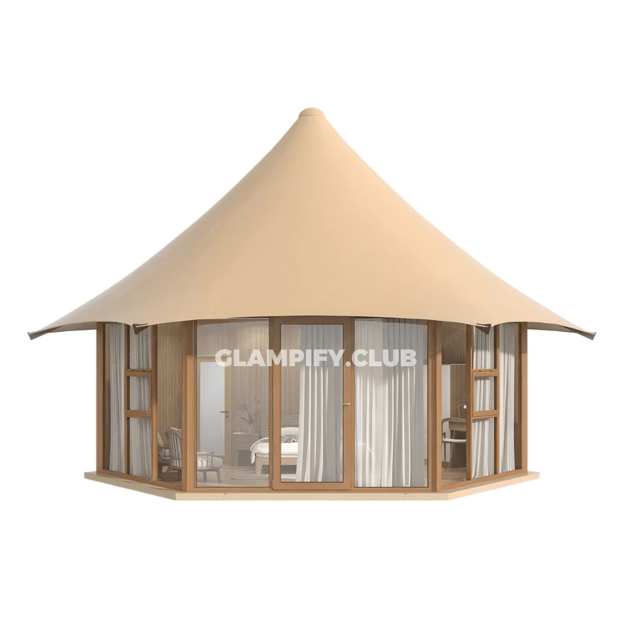 Ya sea para un resort de lujo o un sitio de glamping privado, esta carpa ofrece tanto encanto estético como rendimiento funcional, una verdadera fusión de comodidad y naturaleza.