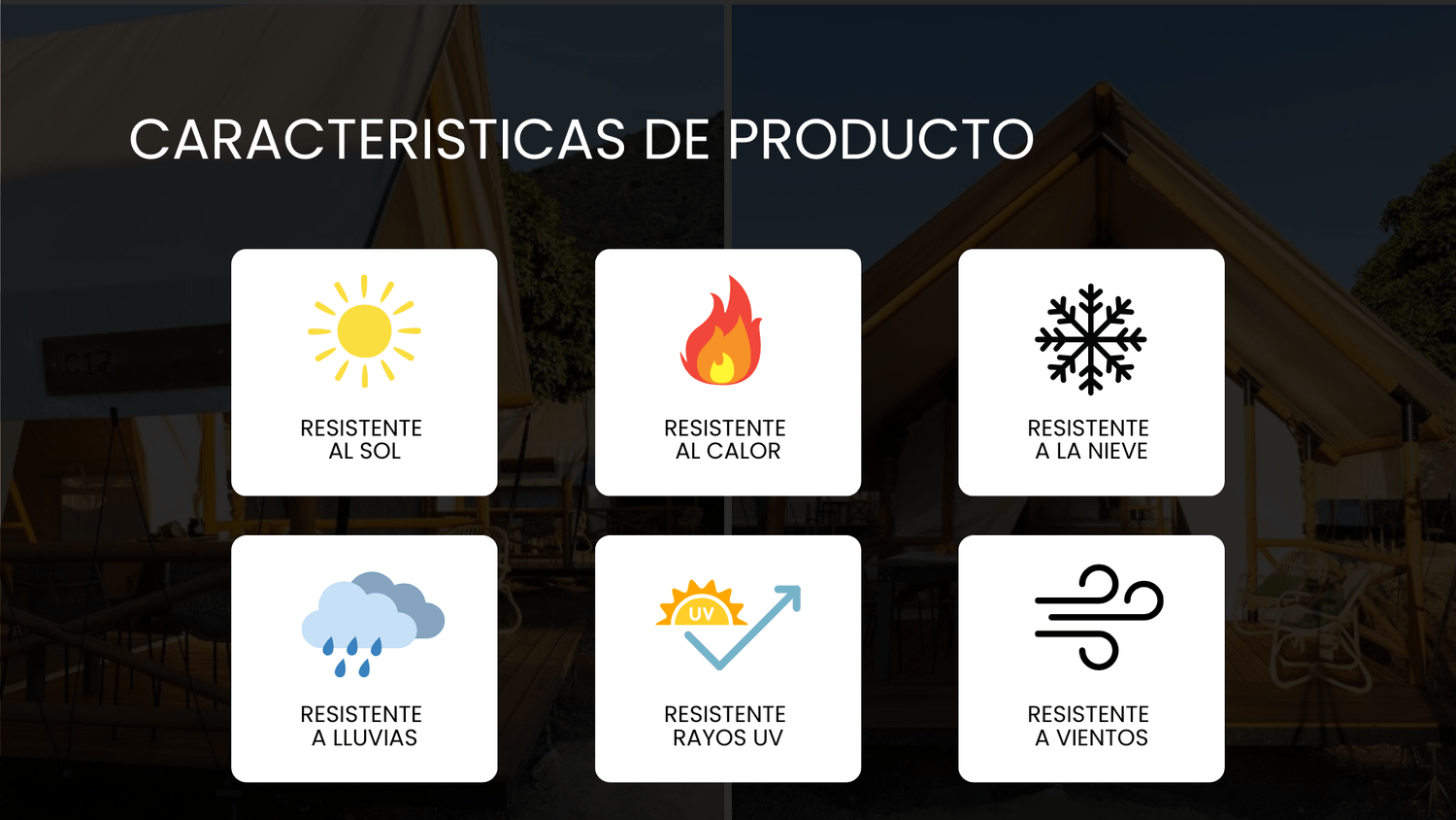 Limpieza Fácil, gracias a la membrana de PVDF auto limpiante, el cual, reduce el mantenimiento: la lluvia y el viento ayudan a mantener limpio el exterior de la tienda.