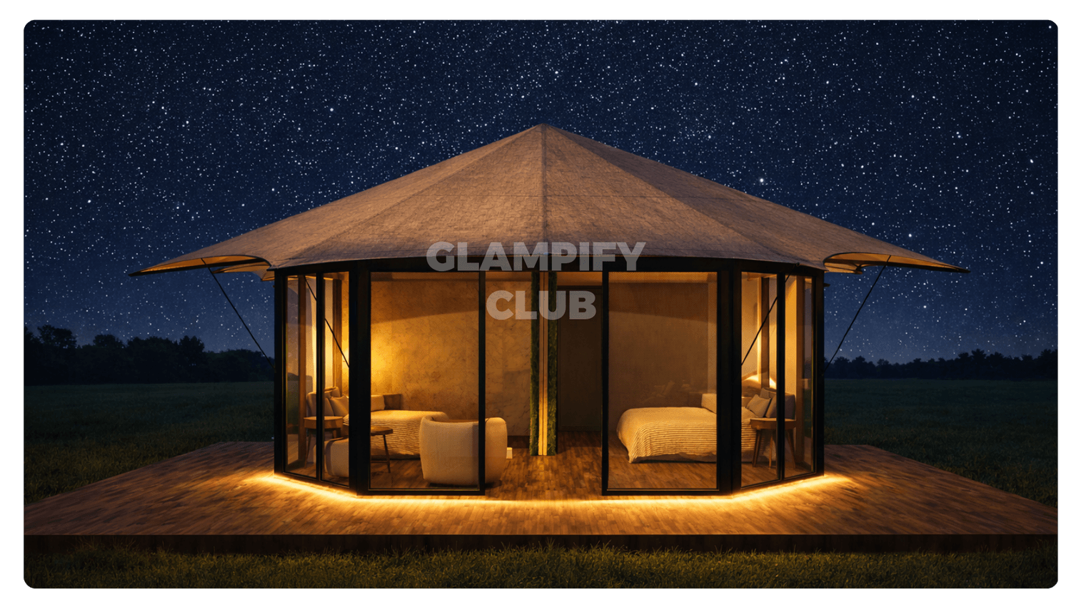 Y propietarios de glampings, amantes de la vida en la naturaleza. Esta elegante Casa Octogonal de 35 m² combina estética, funcionalidad y experiencia.