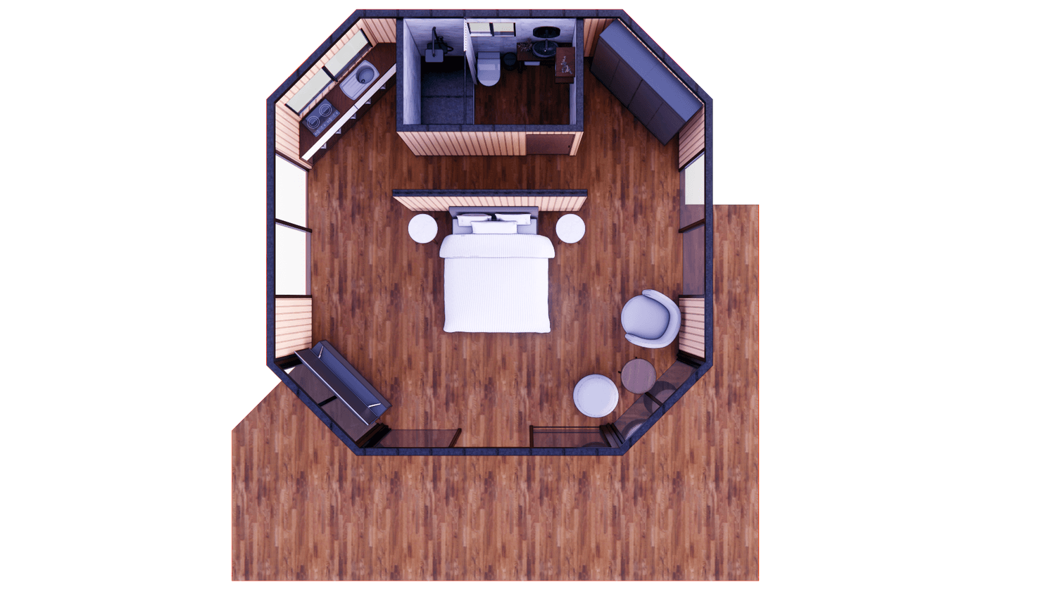 Nuestra Casa Octogonal de 35 m² es la solución perfecta para proyectos de glamping, alojamientos turísticos o viviendas de campo que buscan combinar diseño, confort y rentabilidad.